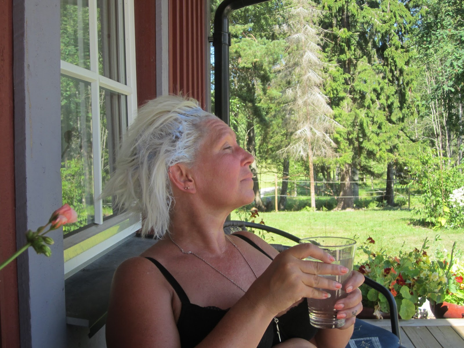 Det har blivit en stund på solsängen och lite plock inne. Sen kom syrran och vi färgade lite ögonfransar och jag fick bleka hennes utväxt, jag talade om och varnade henne för att jag är usel på hårvård och visst blev hon fläckig som en leopard i hårbotten... Solly ;)
