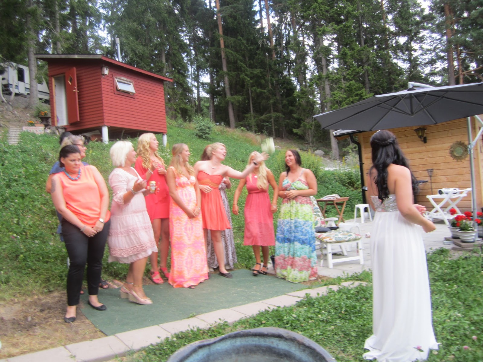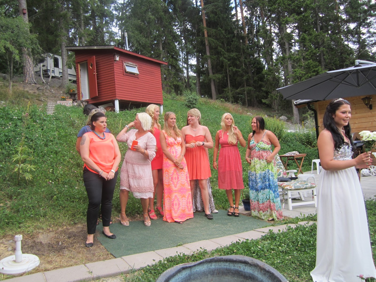 | Dags att kasta buketten, alla ogifta blev utsjasade att stå där :) |