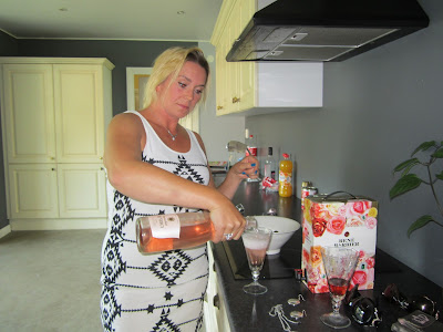 Det slutade med att vi fick springa in då det formligen hällde ner på oss och vi fick klä av oss ute och hoppa i torra mjukiskläder innan vi åt grillad tjockkorv, fikade och faktiskt provsmakade ett vin Lena var nyfiken på.