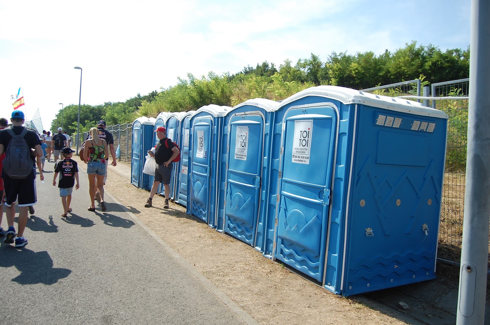 | och kön ringlar sig långt längre än blåa parasollet man set på tältet... |