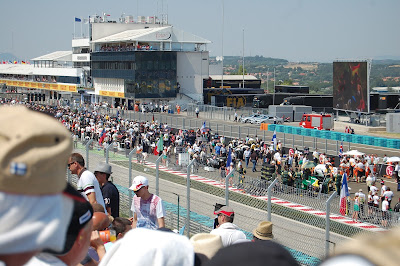 | F 1 förarna vinkar åt publiken |