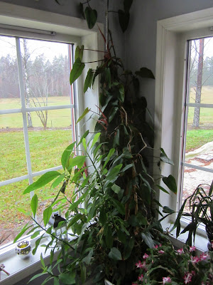 I vardagsrummet har jag nu några stora julkaktusar och ett ödesträd och i köket trängs mina älskade orkidéer. (dom stannar!!)