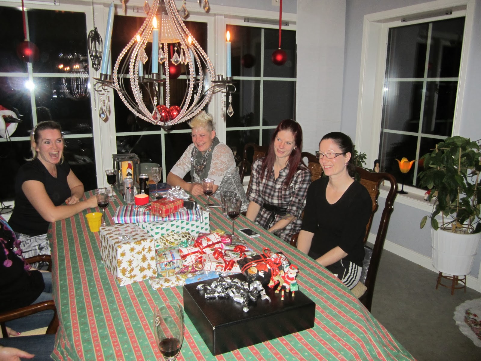 Vi åt massor med mat fick en ljuvligt god chokladkaka som Tracy gjort (utan mjöl), vi fick i oss en hel del vin och vi hade ett superspännande julklappsspel!