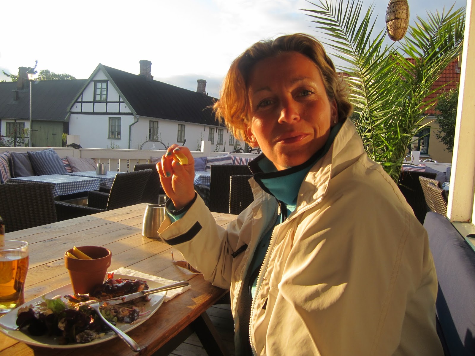 | På vägen hem fiskade vi upp Sussie och här äter vi lunch utanför Jönköping |