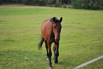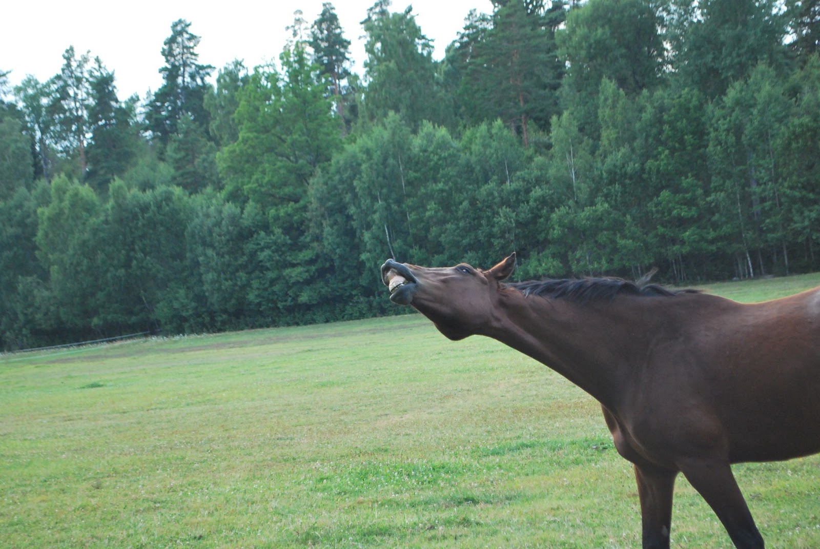 Sen gick jag ner till valackerna som stod läääängst bort i hagen och lite lat som man är provade jag att ropa på dem, Qråkan gör mig sällan besviken ej heller på inkallet. Han kommer när jag ropar, fett najs!