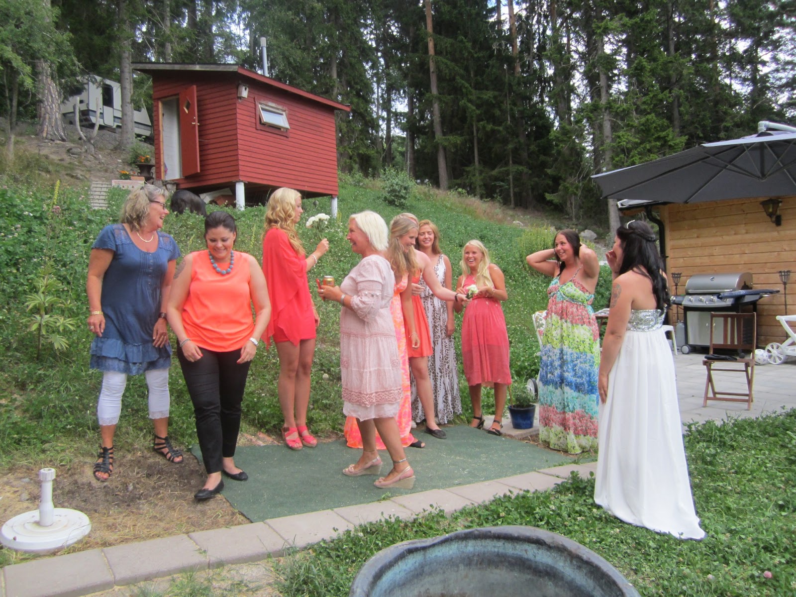 | Dags att kasta buketten, alla ogifta blev utsjasade att stå där :) |