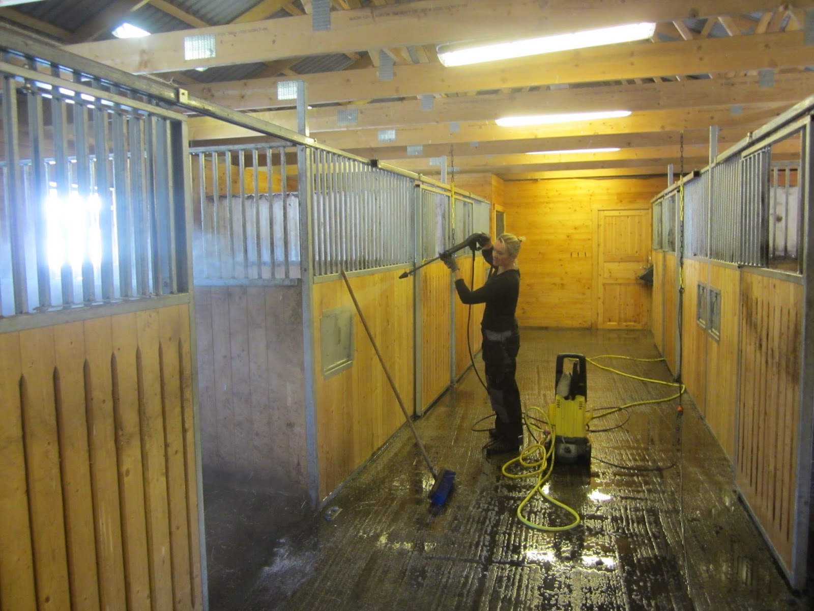 Ja jädrar, det tar lite tid när man ska skrubba 11 boxar med tillhörande stallgång och krubbor!