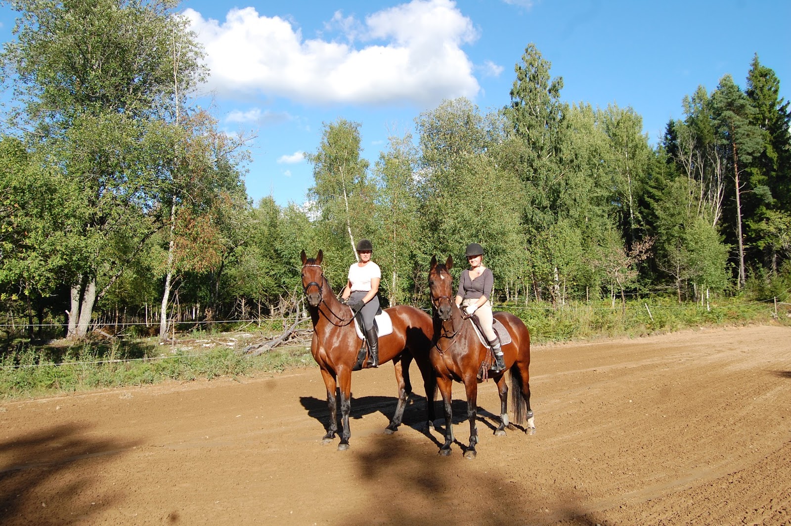Igår red jag ut en sväng med dotter och styrde runt lite på ridbanan innan deras hoppträning, duktig kille även då!