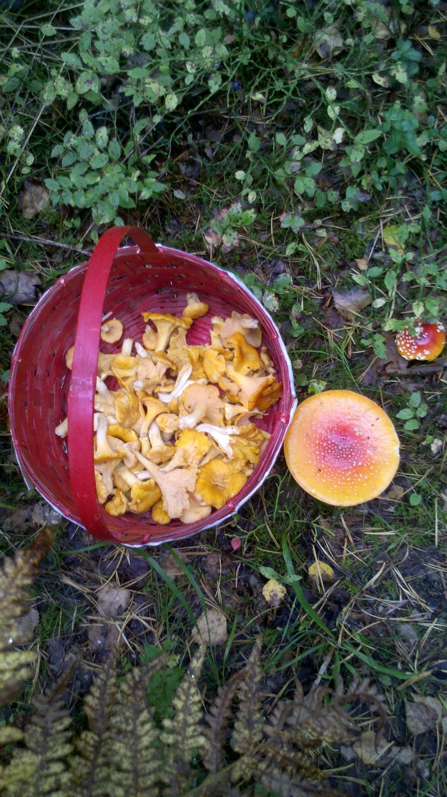 Om någon såg en människa i skogen med prickiga höga gummistövlar, beige fleecetröja med höboss på med håret rätt upp, bärandes på en jultomtekorg, emellanåt kliandes i skrevet... Det var jag!