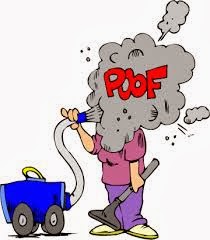 När jag ser honom gå lös med sina flaskor lämnar jag rummet direkt för att kunna andas, undrar vad för "nyttigheter" det är i flaskorna egentligen.