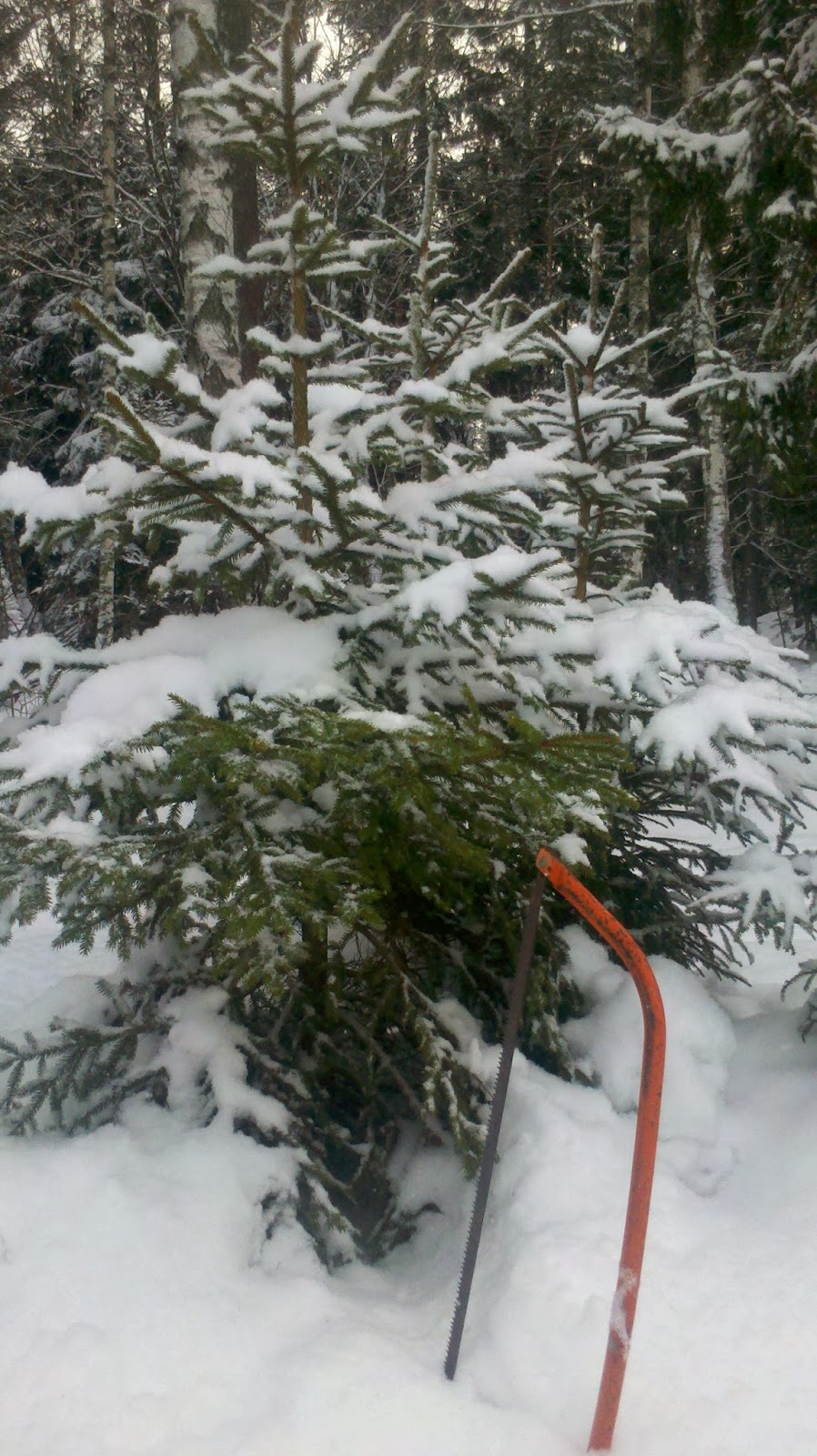 | December förra året, här hämtar jag vår julgran ute i djupsnön... |